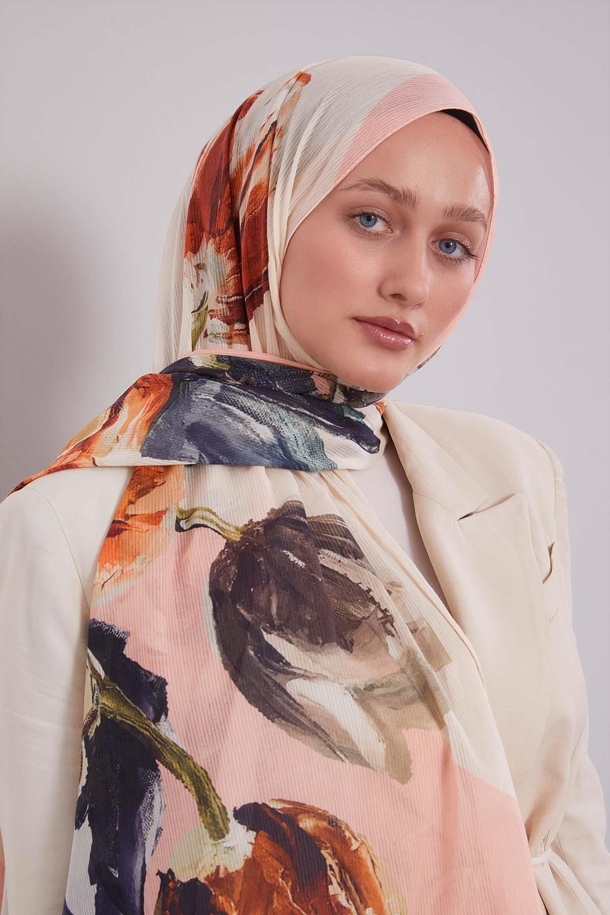 Lale desen pamuk şal sade şıklığı modern bir yorumla buluşturuyor. Lale deseniyle klasik şal tasarımına sofistike bir hava katan bu model farklı renk seçenekleri ile her zevke hitap ediyor. Yumuşak dokusuyla kombinlerinize hem günlük hem de özel bir şıklık katıyor. Başörtüsü olarak kullanılabileceğiniz gibi omuz örtüsü veya çanta aksesuarı olarak da stilinize yaratıcı bir dokunuş katabilirsiniz. Tesettür tuniklerinizin üzerine kullandığınızda gün boyu rahatlık sunarken kombinlerinize sofistike bir görünüm sunuyor.