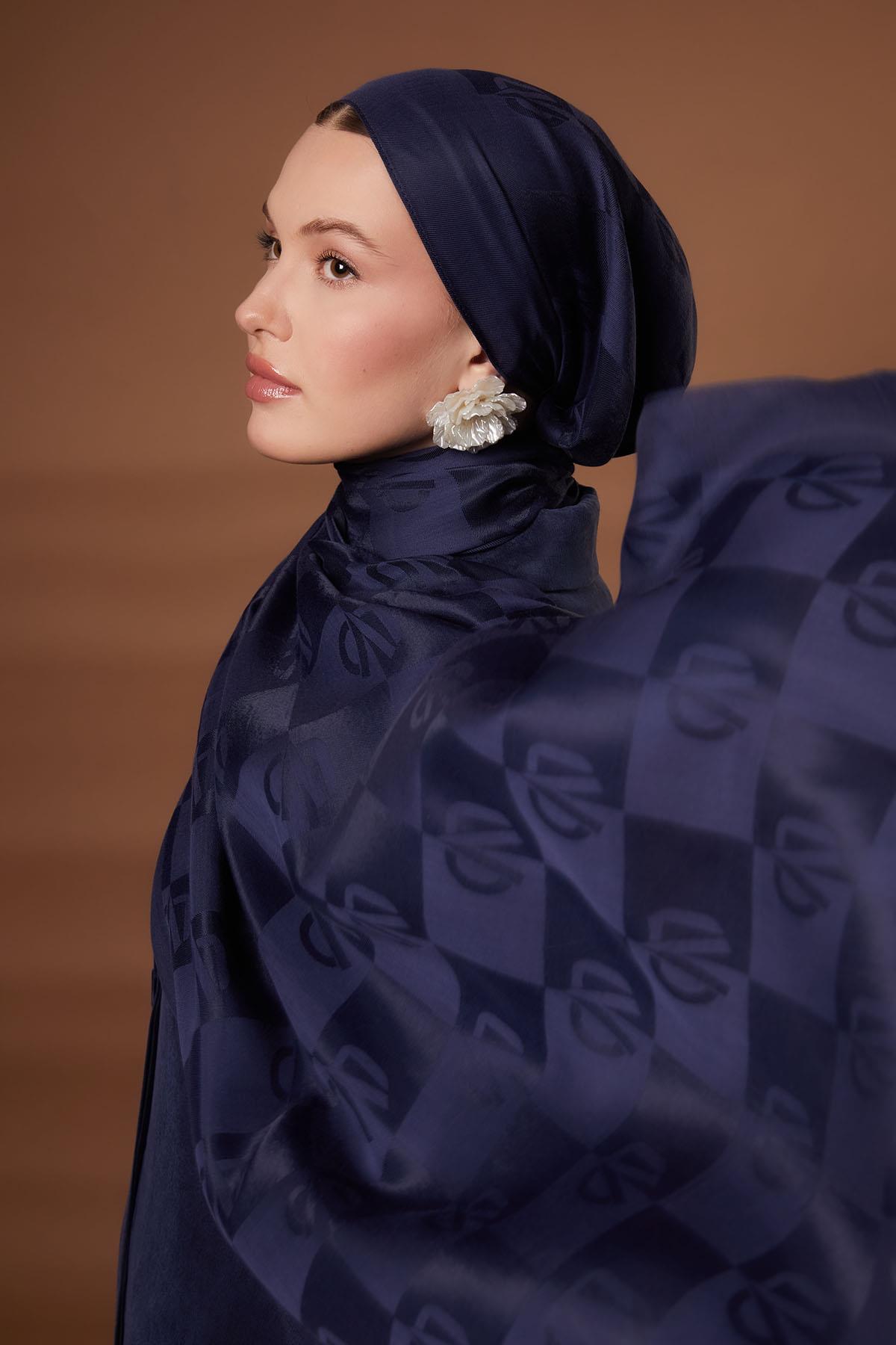 LevidorA.Lacivert Kare LVD Baskılı Naia Jakar Şal