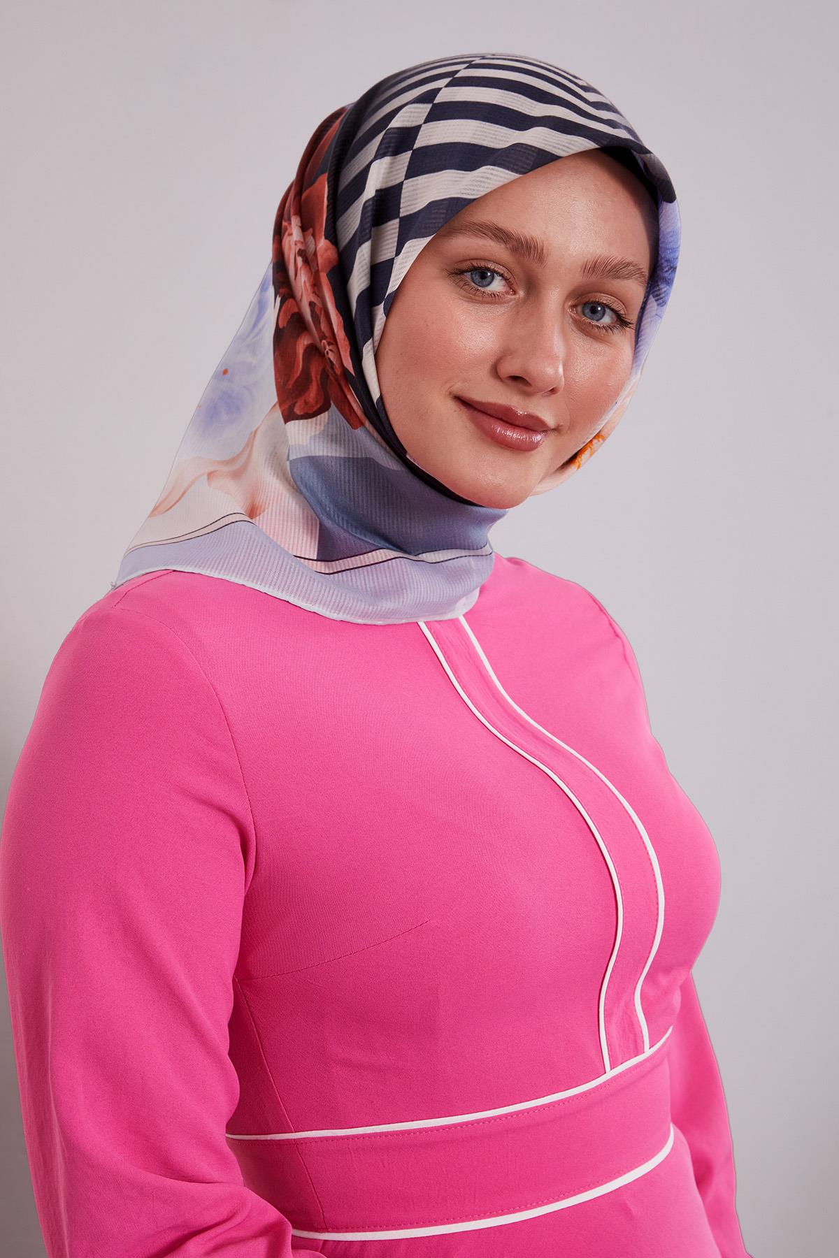Günlük kombinlerinizden özel davetlere kadar her ortama zarafet katan çizgili çiçek desen pamuk eşarp doğanın huzur veren tonlarını özel dokusu ile bir araya getiriyor. Farklı renk seçenekleriyle klasik ve çağdaş stilin mükemmel uyumunu yansıtıyor. Yumuşak dokusu ve zarif deseniyle kombinlerinize hem günlük hem de özel bir şıklık katıyor. Başörtüsü olarak kullanılabileceğiniz gibi omuz örtüsü veya çanta aksesuarı olarak da stilinize yaratıcı bir dokunuş katabilirsiniz. Kışlık ikili takımlarınızın üzerine kullandığınızda gün boyu rahatlık sunarken kombinlerinize sofistike bir görünüm sunuyor.