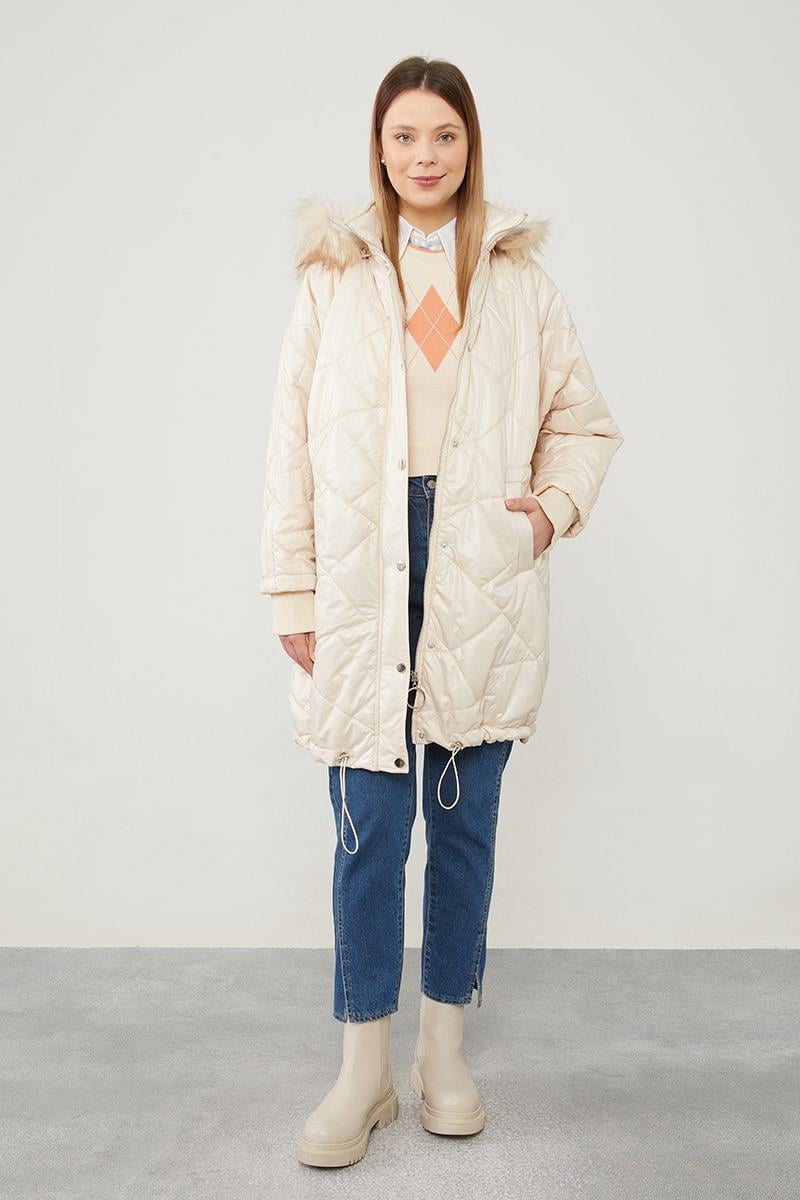 LevidorBej Tüy Detaylı Kapitone Mont