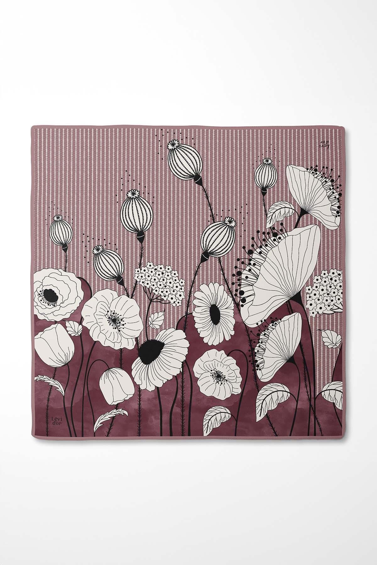 LevidorBordo Çiçekli Twill İpek Eşarp