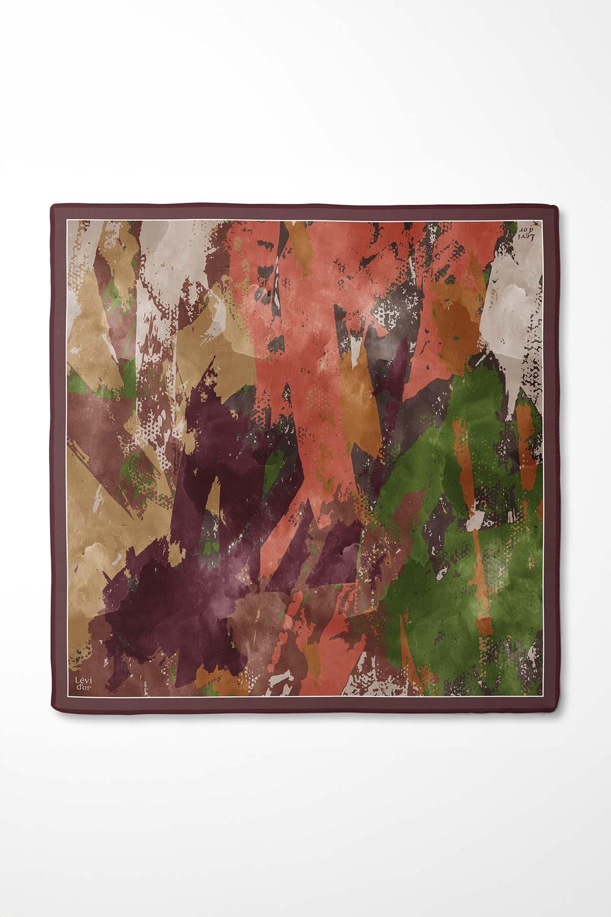 Bordo Karma Desenli Twill İpek Eşarp (LVD.IPE.0925)