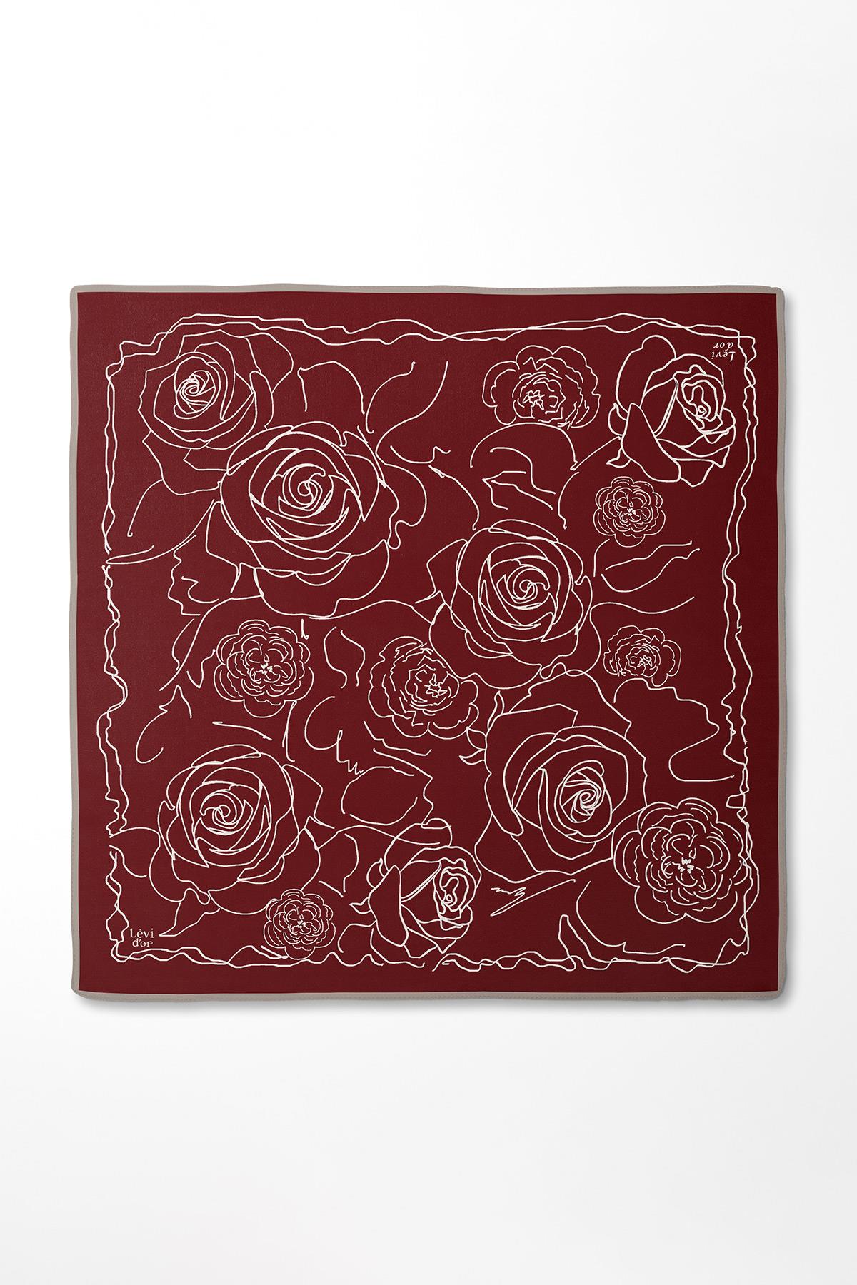 LevidorBordo Gül Desen Twill İpek Eşarp
