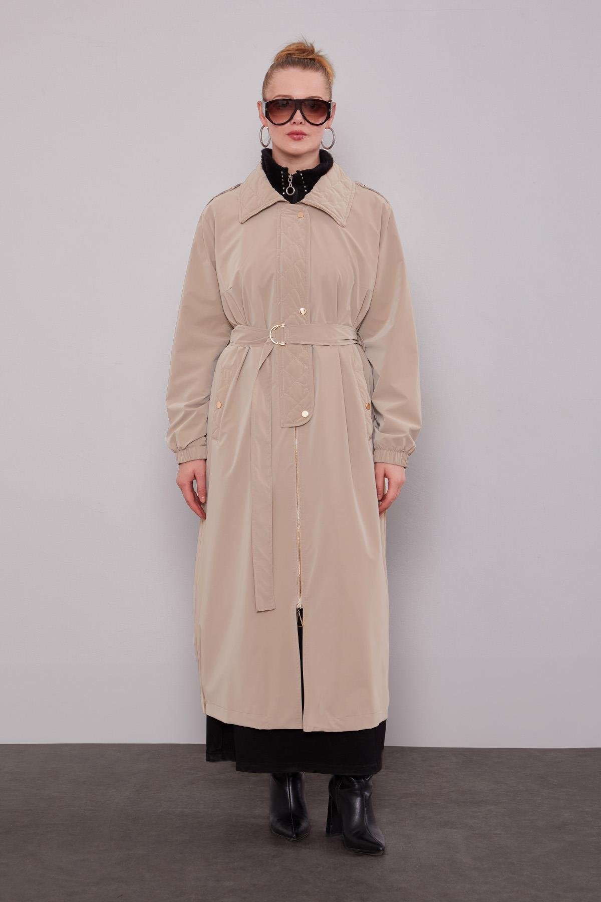 Camel Kapitone Detaylı Trençkot Taş Kapitone Detaylı Trençkot Siyah Kapitone Detaylı Trençkot