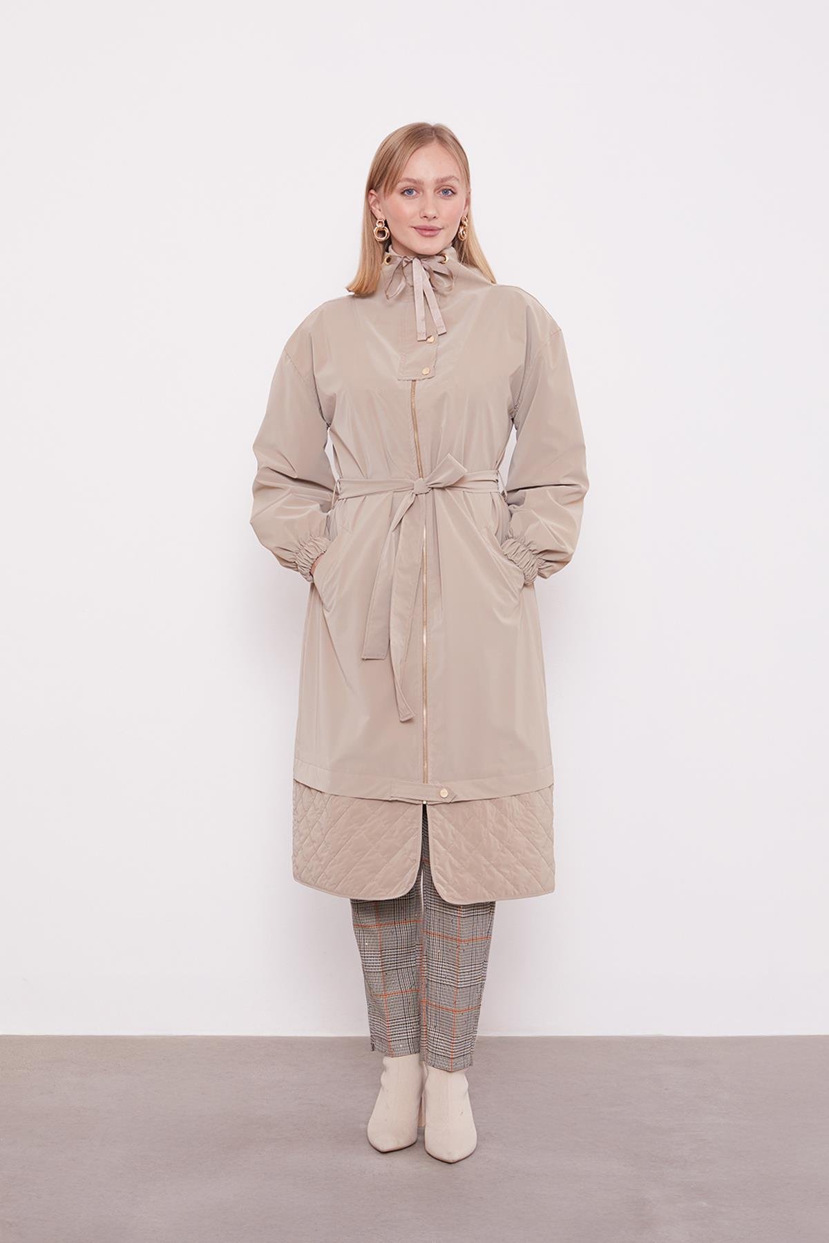 Camel Kurdale Yaka Detay Trençkot Bej Kurdale Yaka Detay Trençkot
