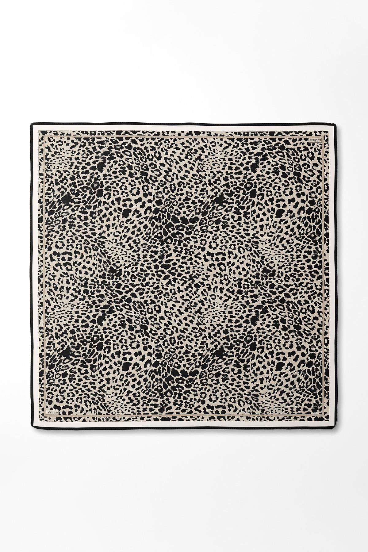 Ekru Leopar Desen Twill İpek Eşarp (LVD.IPE.0921)