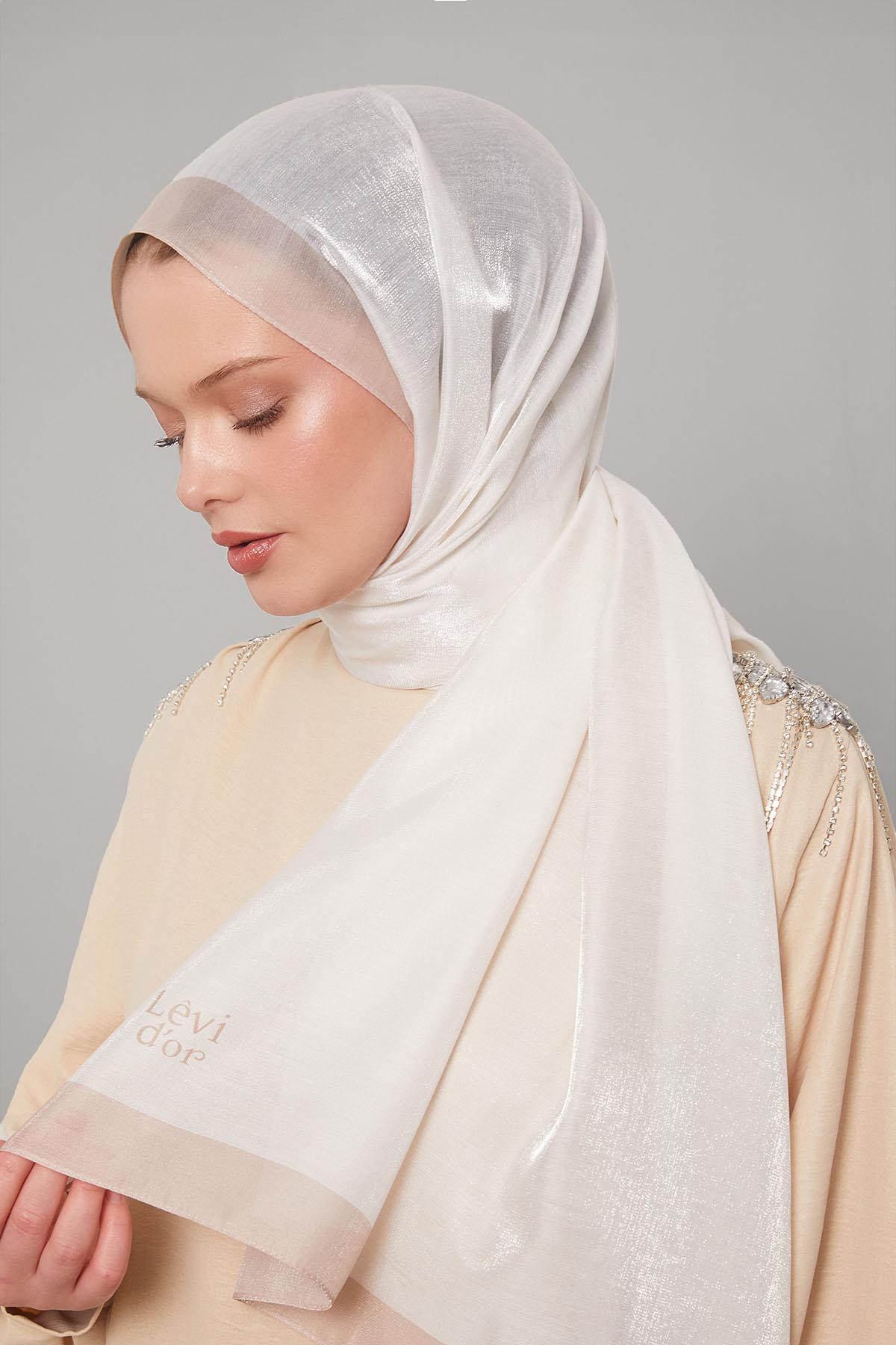 Ekru Şerit Desen Kehribar Şal (LVD.KEH.0005)