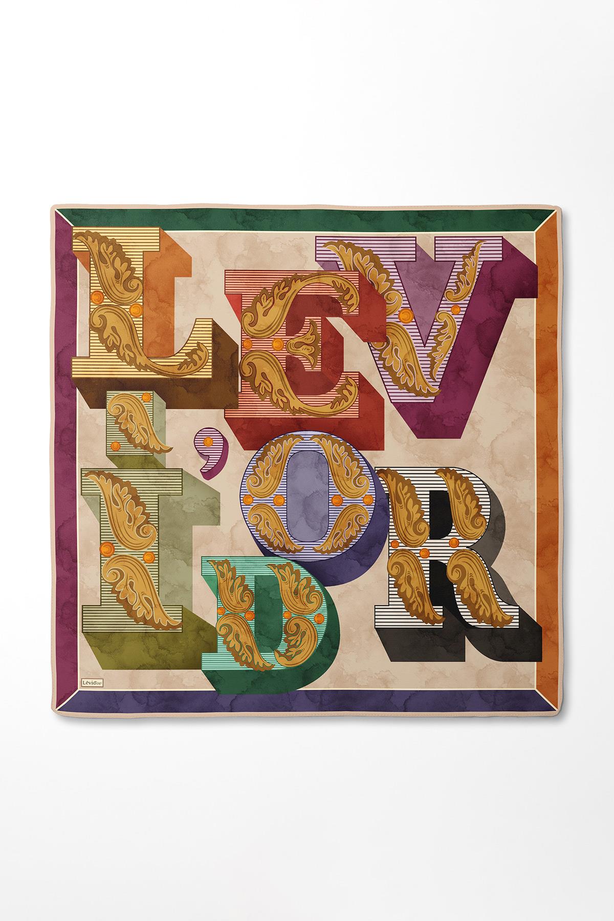 LevidorFuşya Karışık Desen Twill İpek Eşarp