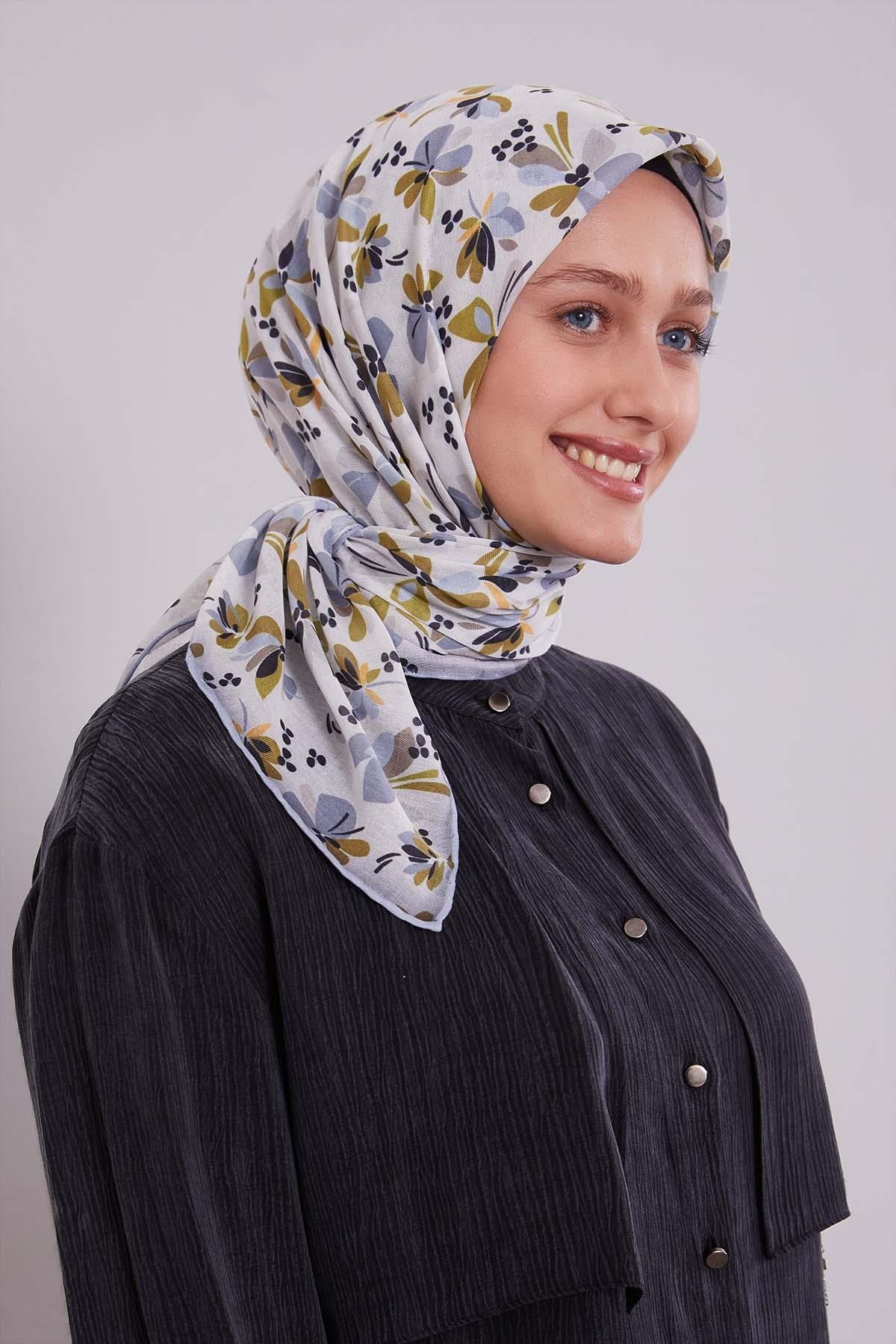 Gri Çiçek Desen Soft Eşarp (LVD.SFT.0001)