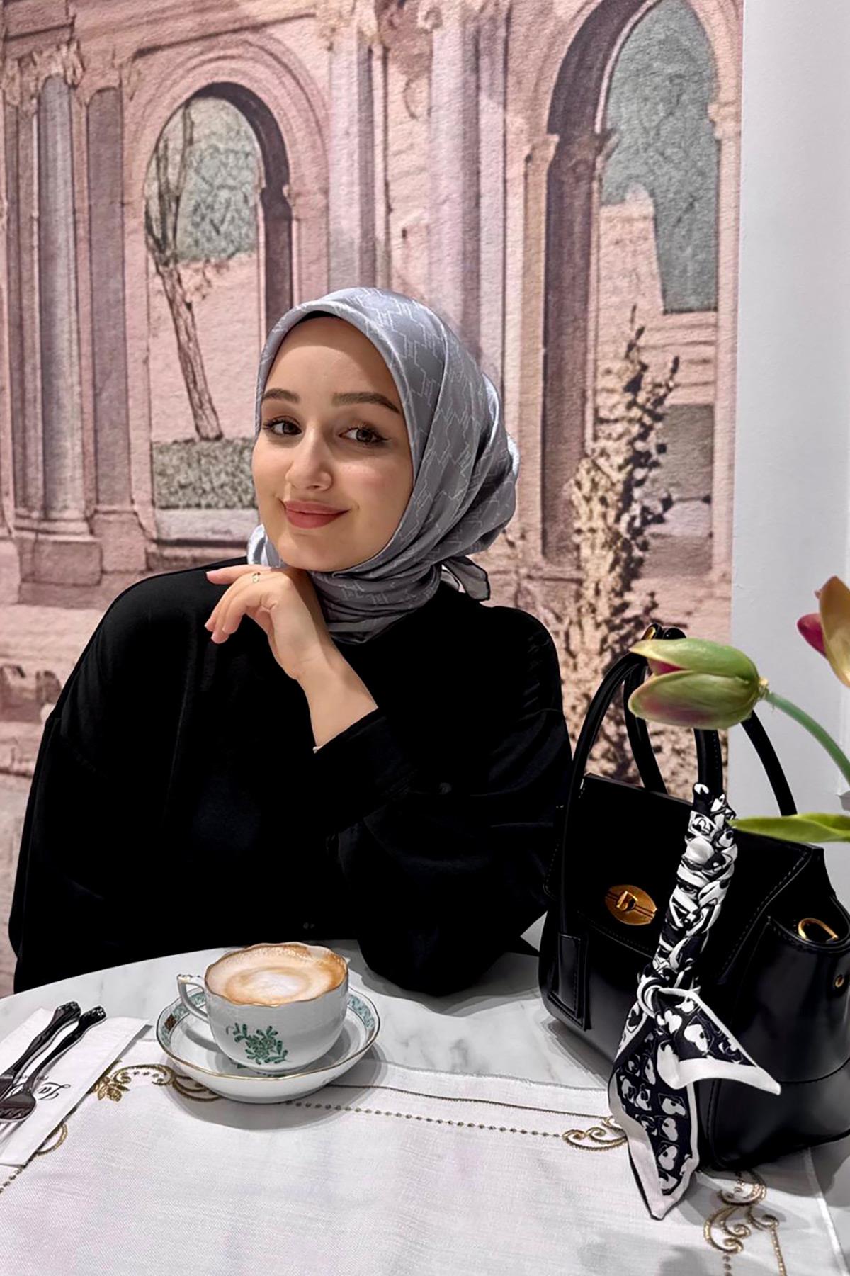 Gümüş Petek Desen Twill İpek Eşarp (LVD.IPE.0905)