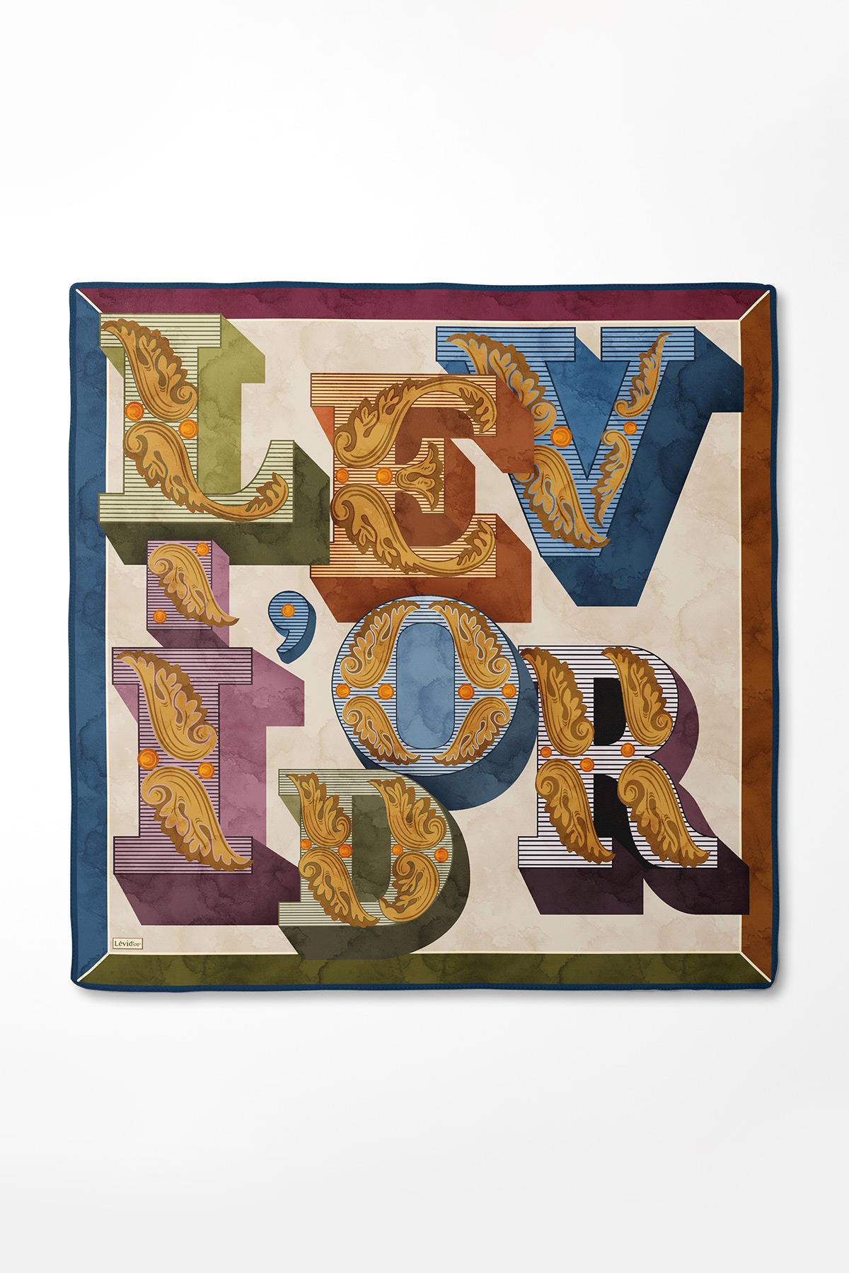 Levidorİndigo Karışık Desen Twill İpek Eşarp