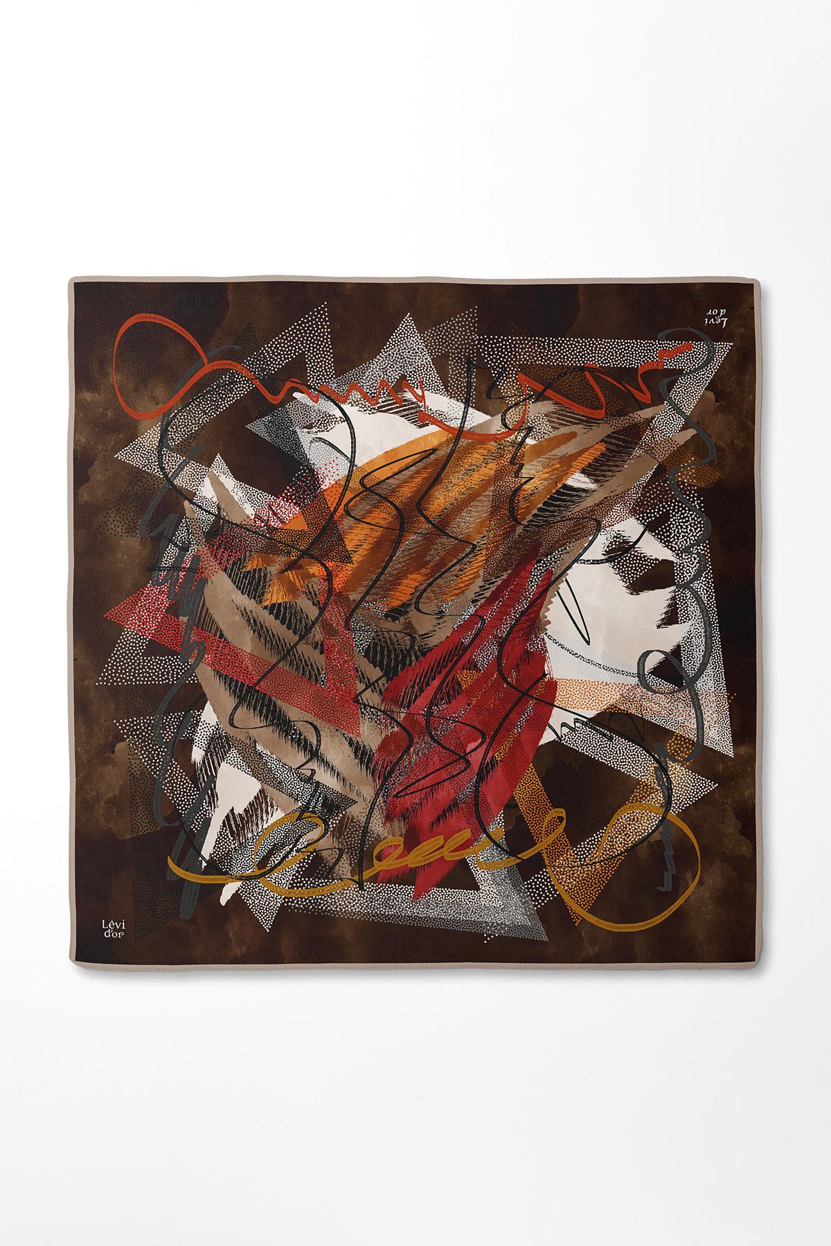 LevidorK.Kahve Karmaşık Desen Twill İpek Eşarp
