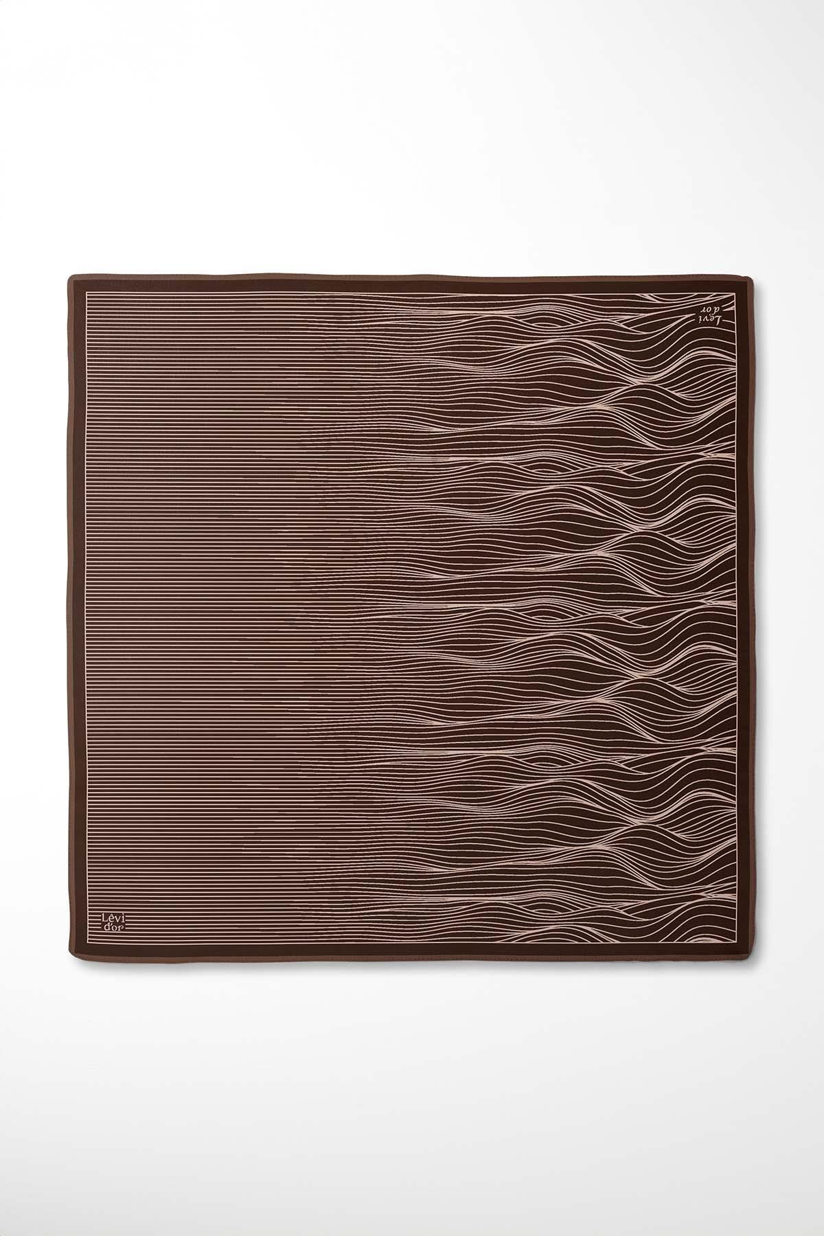 LevidorKahve Çizgi Desen Twill İpek Eşarp