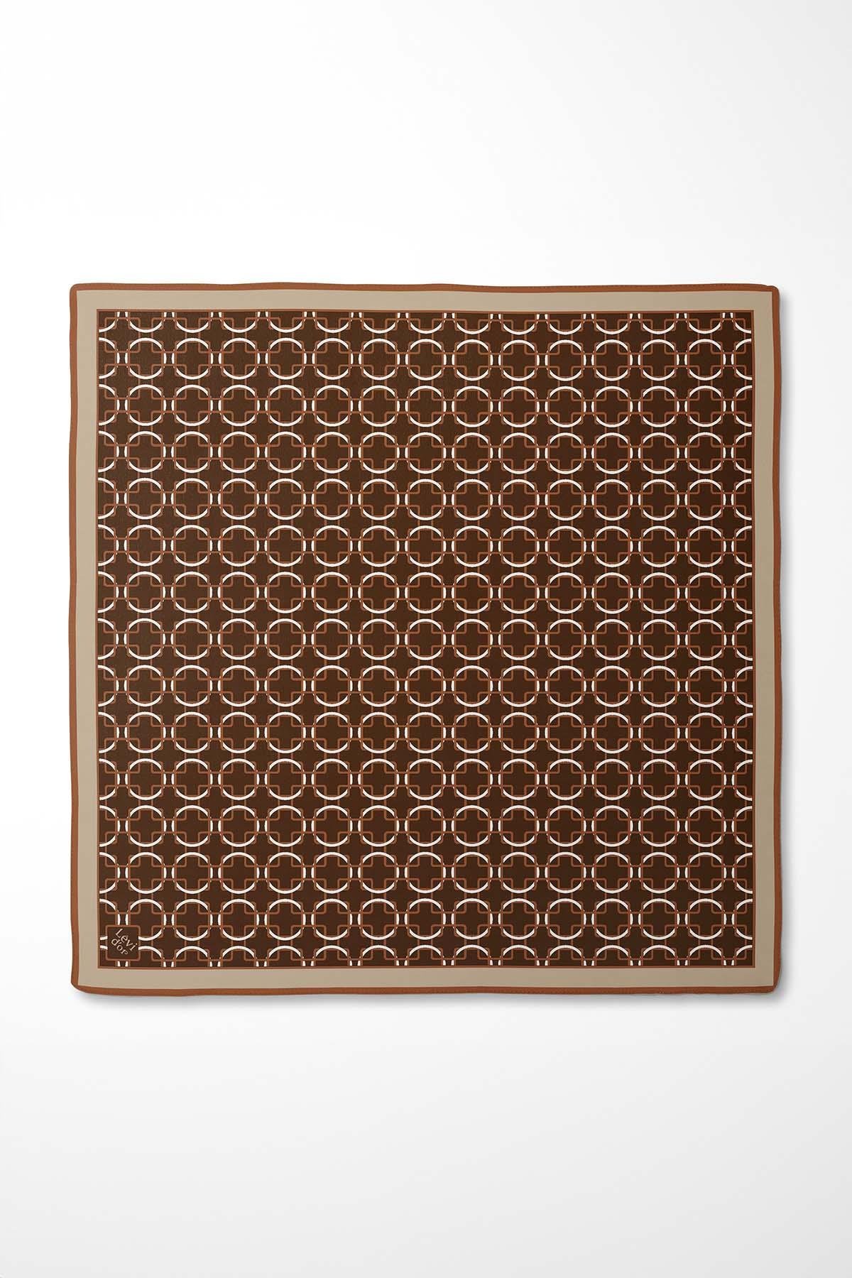 LevidorKahve Desenli Twill İpek Eşarp