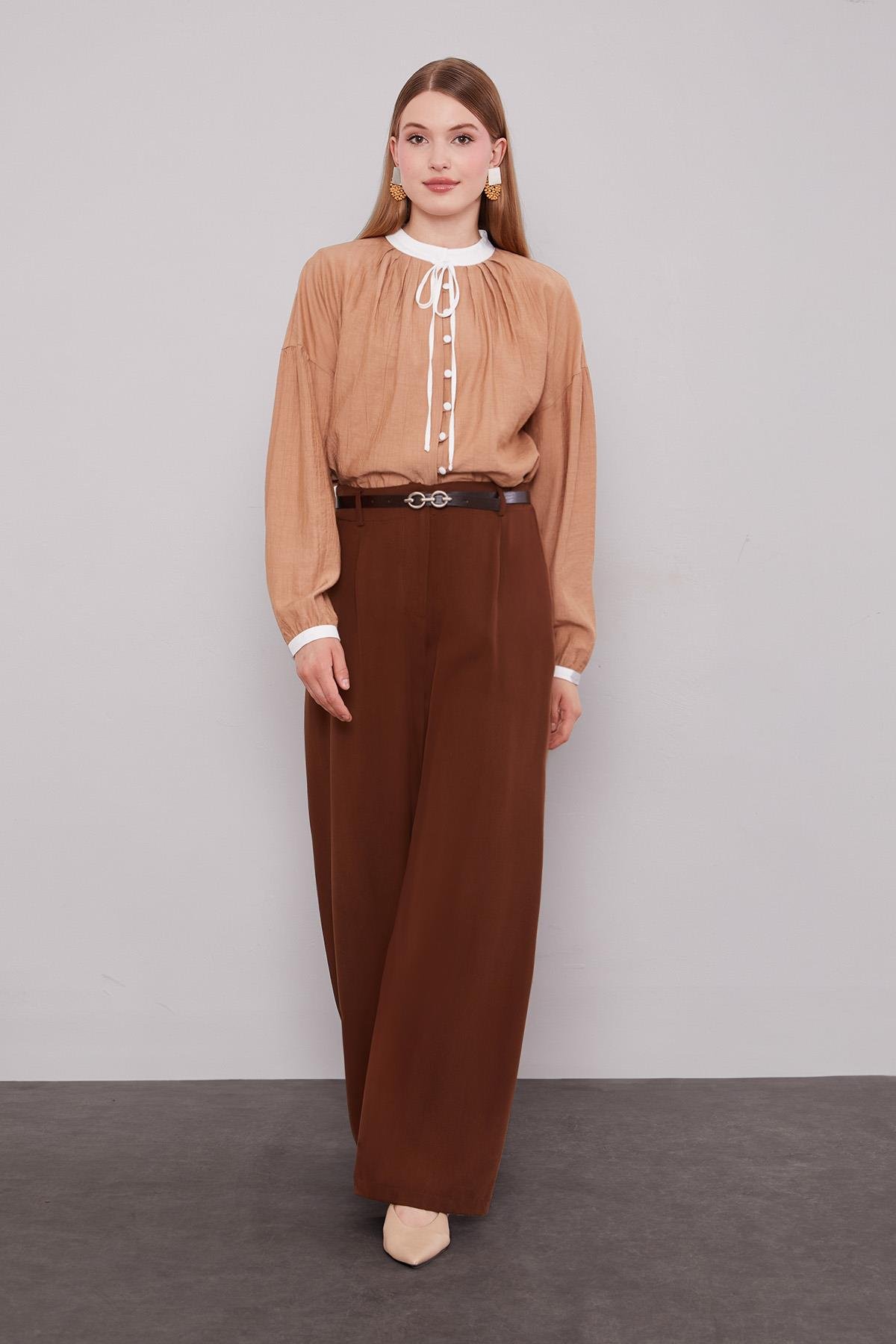 Kahve Düz Kesim Palazzo Pantolon (410111)