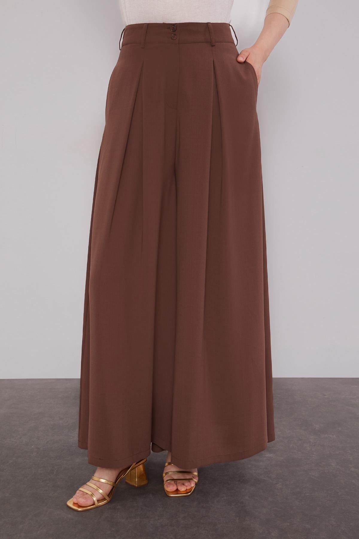 Kahve Geniş Paça Piliseli Pantolon Etek (410117)