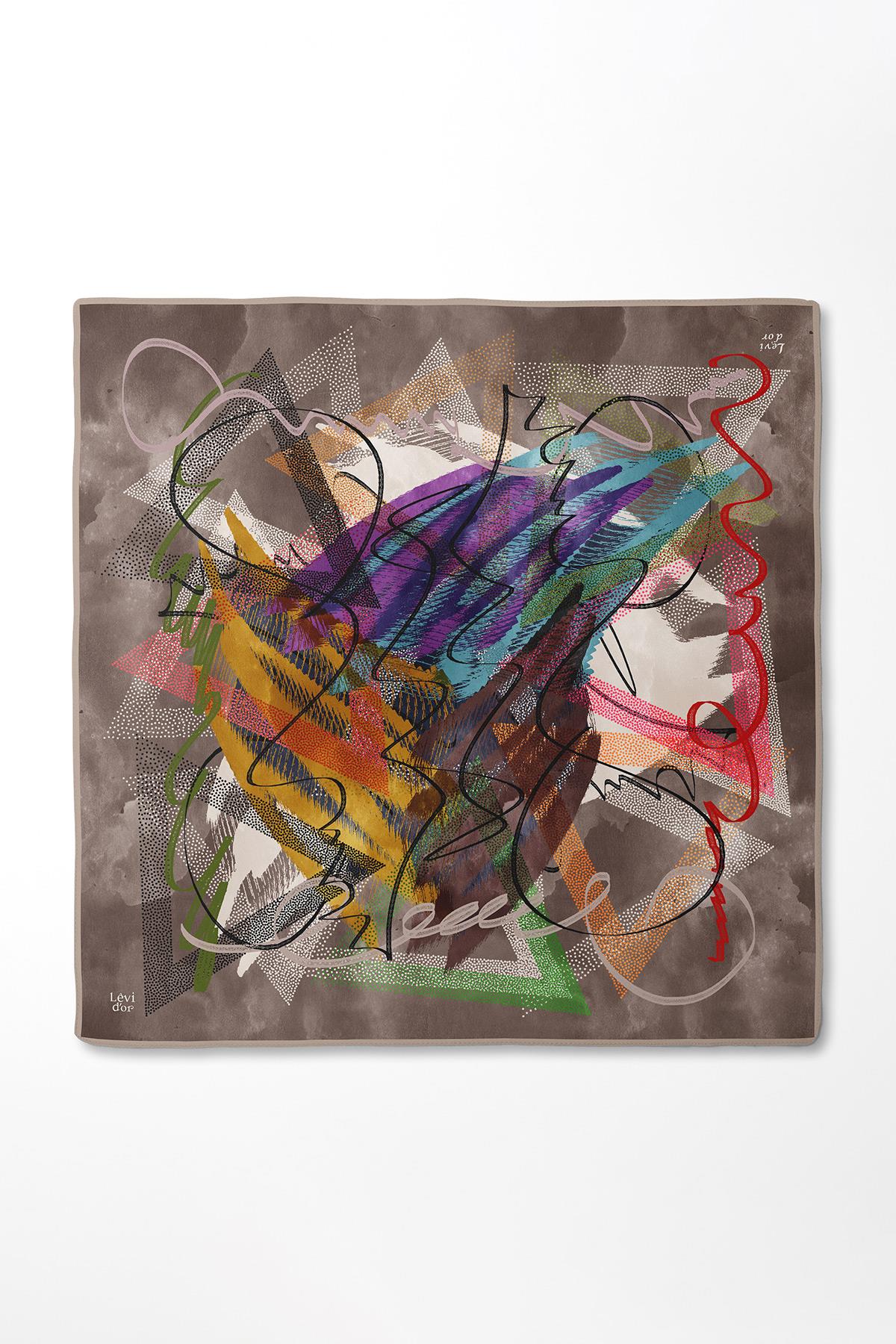 LevidorKahve Karmaşık Desen Twill İpek Eşarp