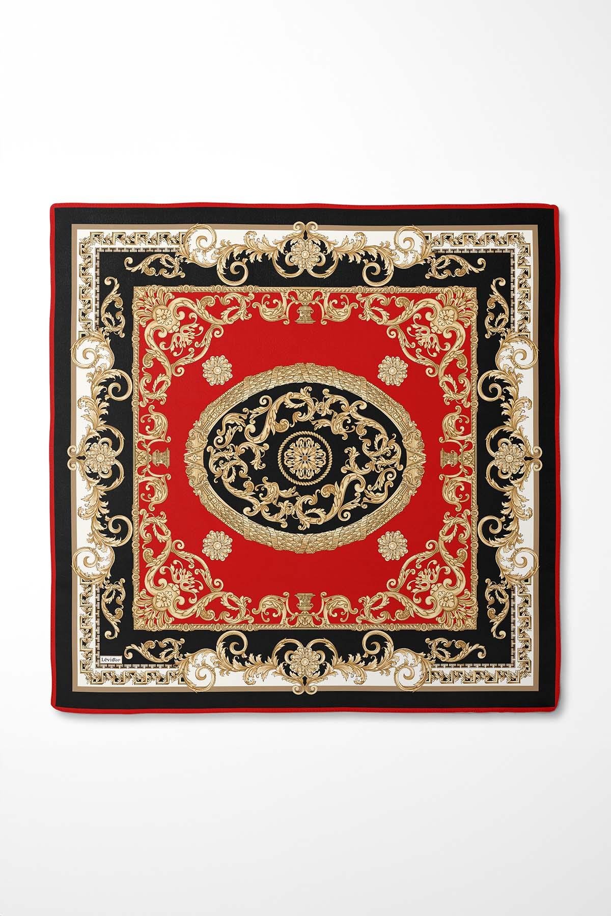 Kırmızı Varak Desen Twill İpek Eşarp (LVD.IPE.0929)