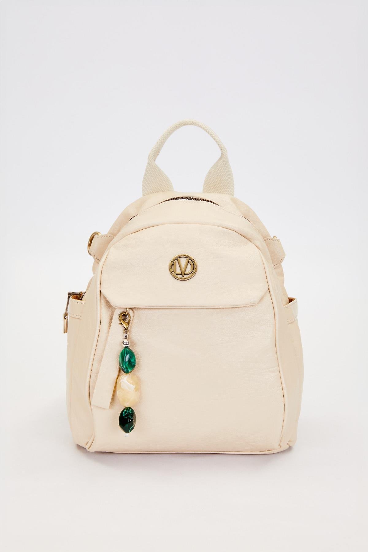LevidorKrem Taş Charm Detaylı Omuz Çantası