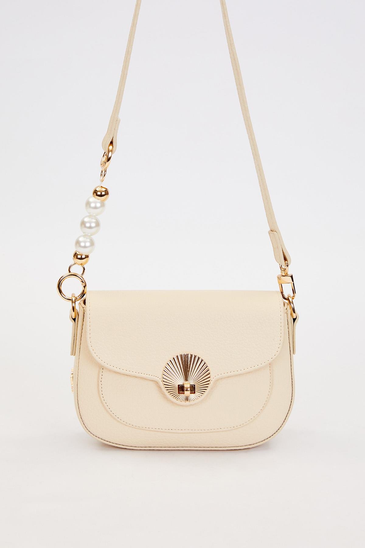 LevidorKrem Zİncir İnci Detay Omuz Çantası
