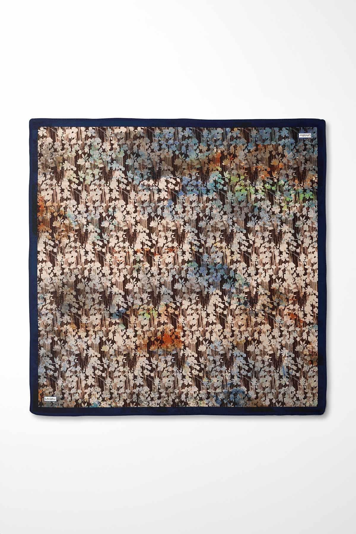 Lacivert Çiçekli Soyut Desen Twill İpek Eşarp (LVD.IPE.0932)