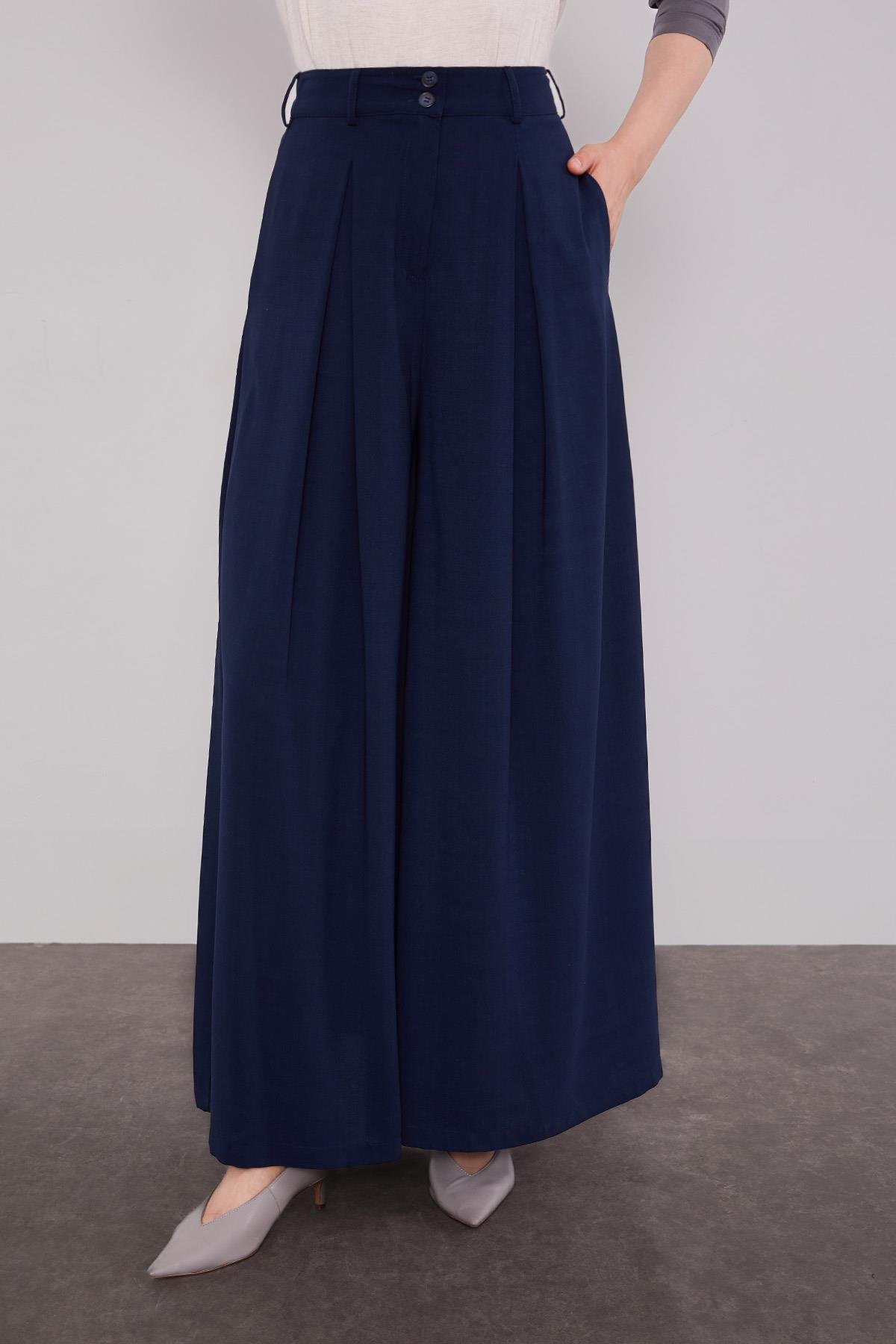 Lacivert Geniş Paça Piliseli Pantolon Etek (410117)