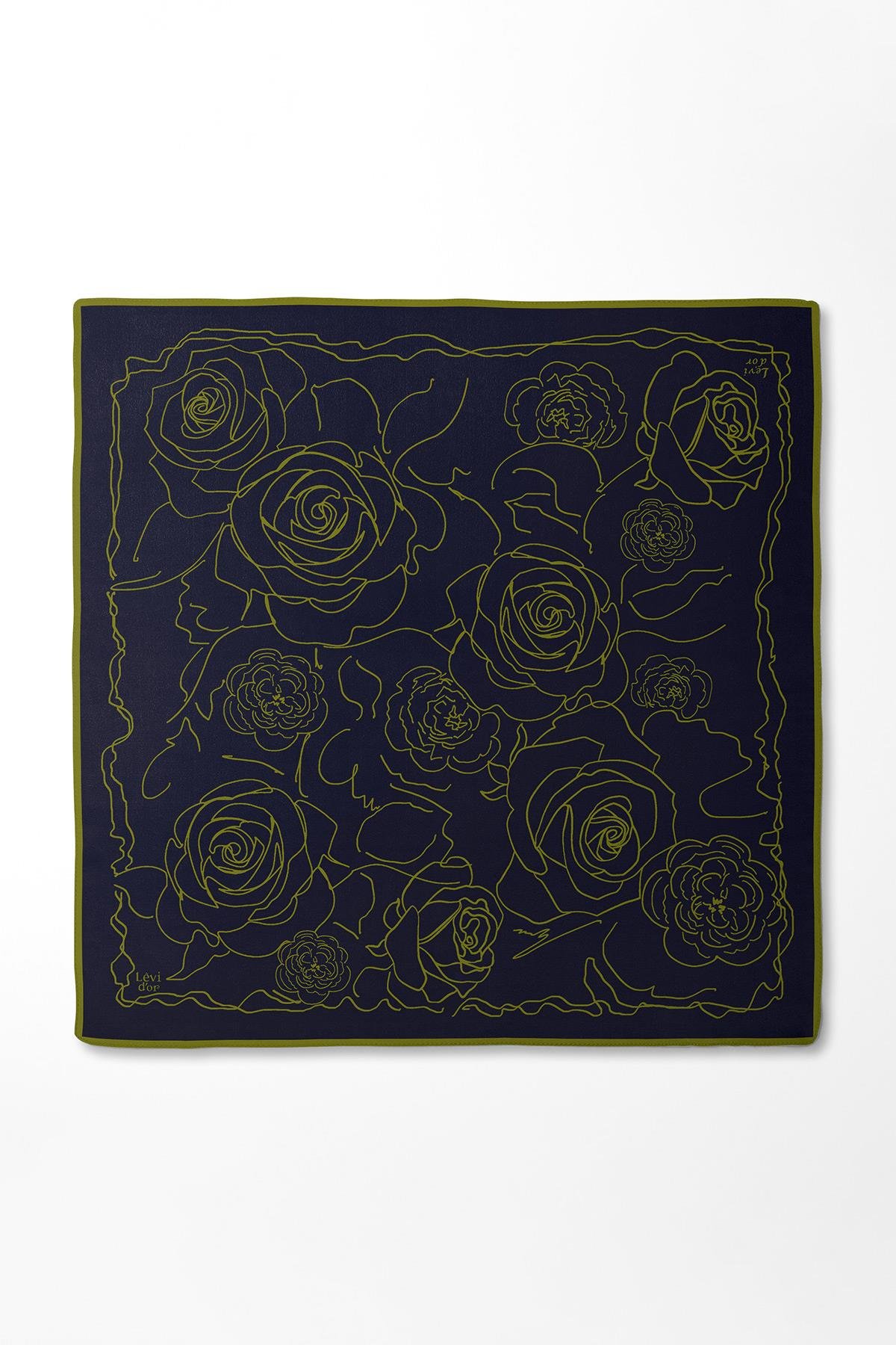 LevidorLacivert Gül Desen Twill İpek Eşarp