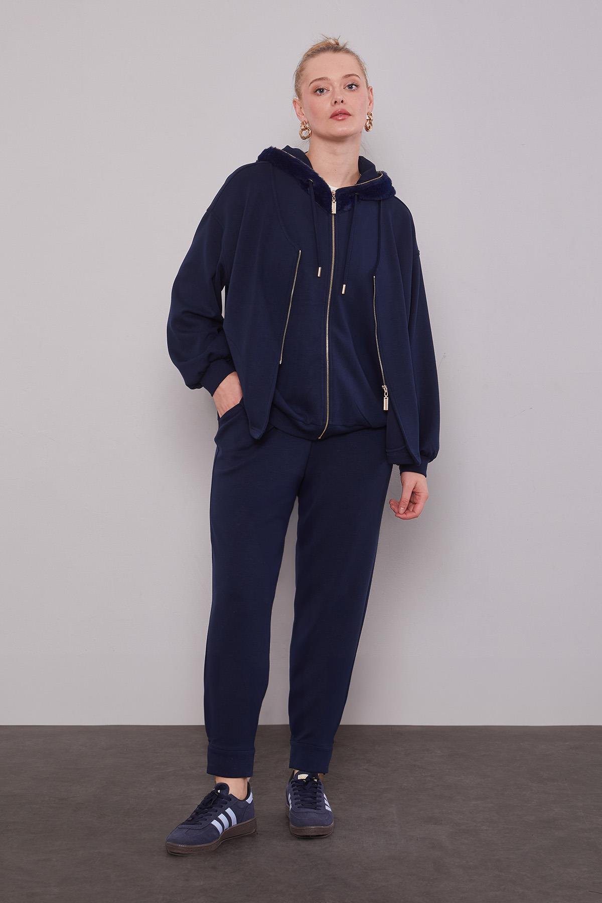 Lacivert Peluş Şapkalı İkili Takım (100901)