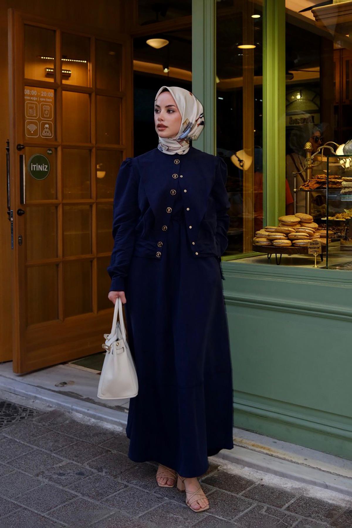 Lacivert Vatkalı Cupra Ceket Takım (330287)