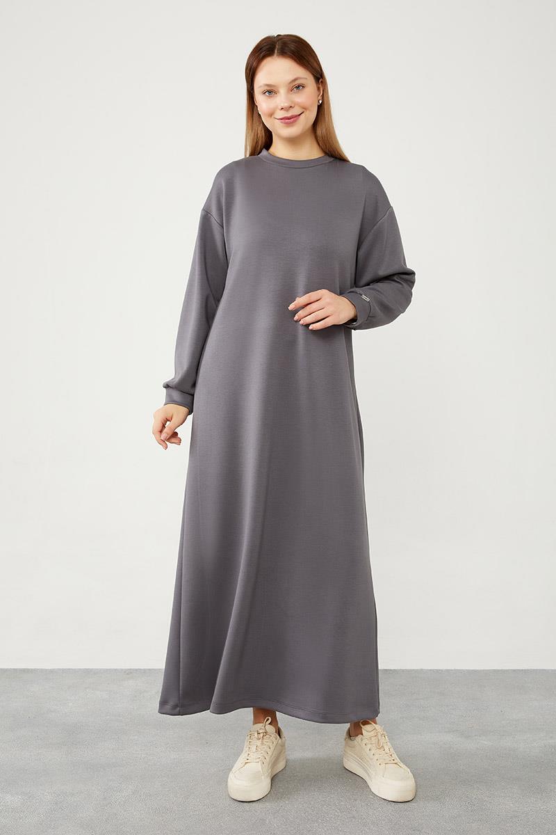 Antrasit Bisiklet Yaka Kolları Ribanalı Elbise (330126)