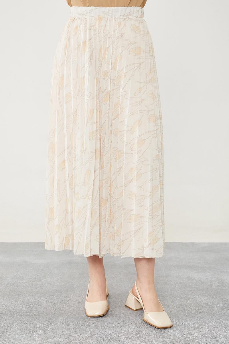 Bej Çiçek Desen Şifon Etek (420029)