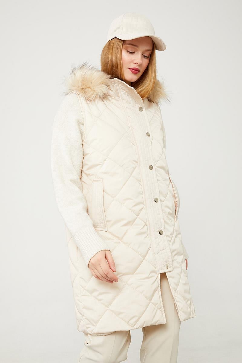 LevidorLevidor Bej Kürk Kapüşonlu Şişme Yelek