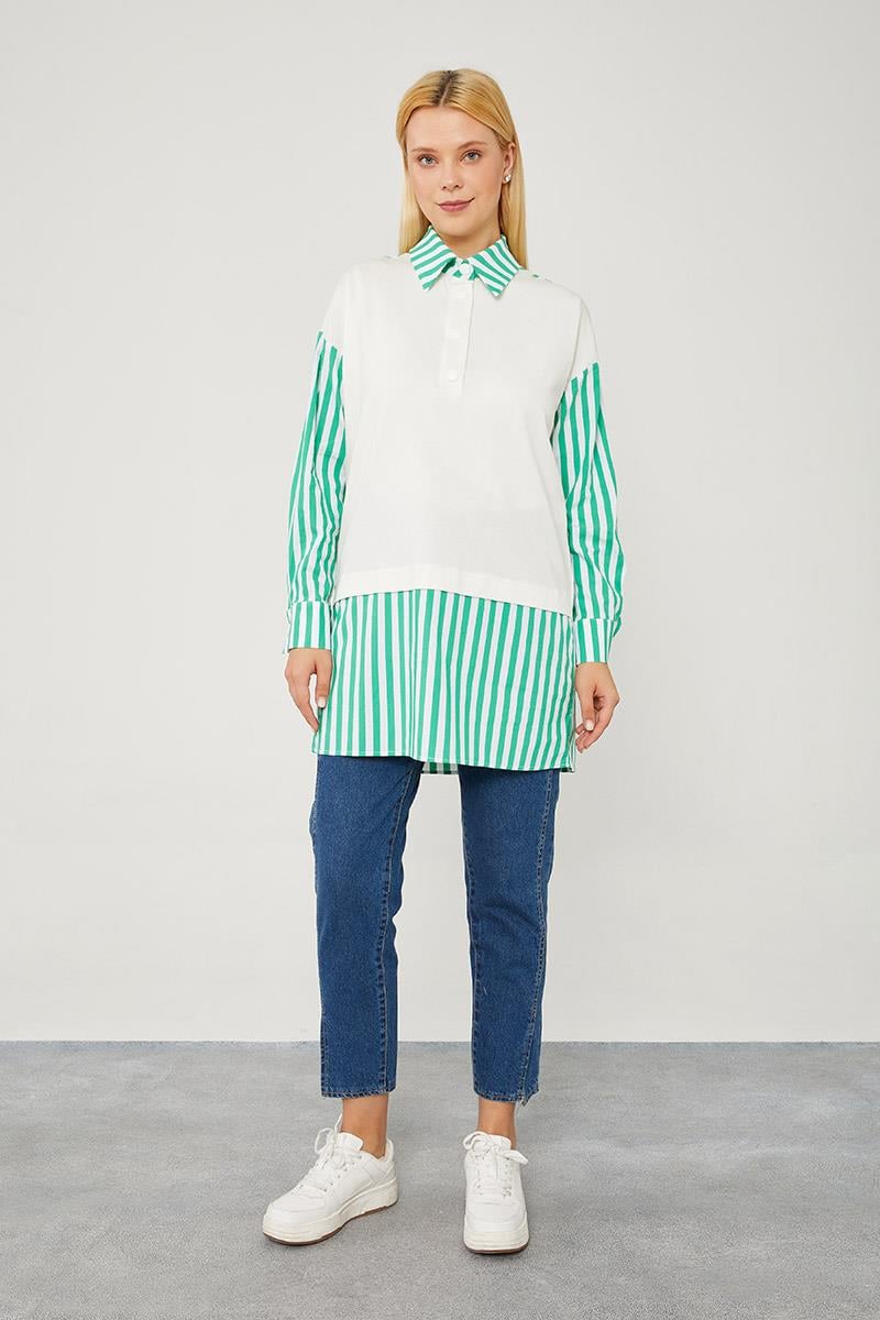 LevidorLevidor Benetton Çizgili Poplin Kumaş Karışımlı Sweat