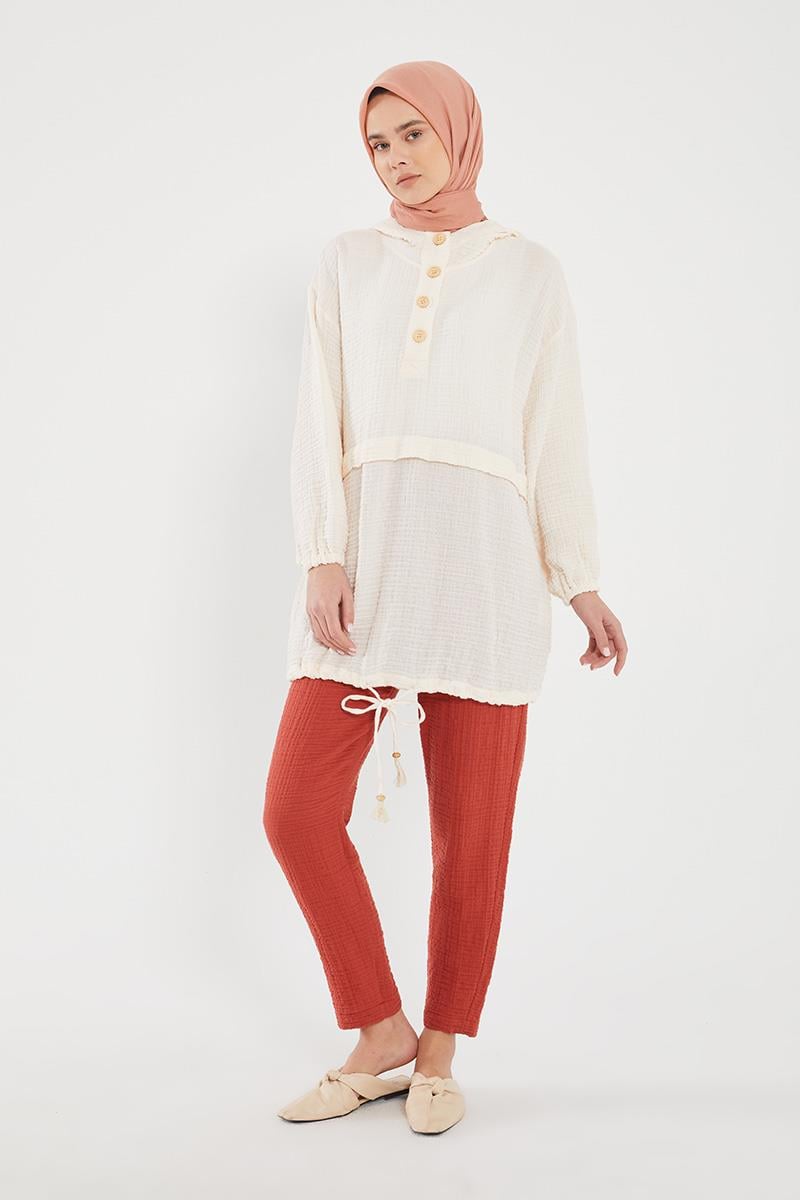 Ekru Kapşonlu Muslin Spor Takım (LVD.2TK.0081)