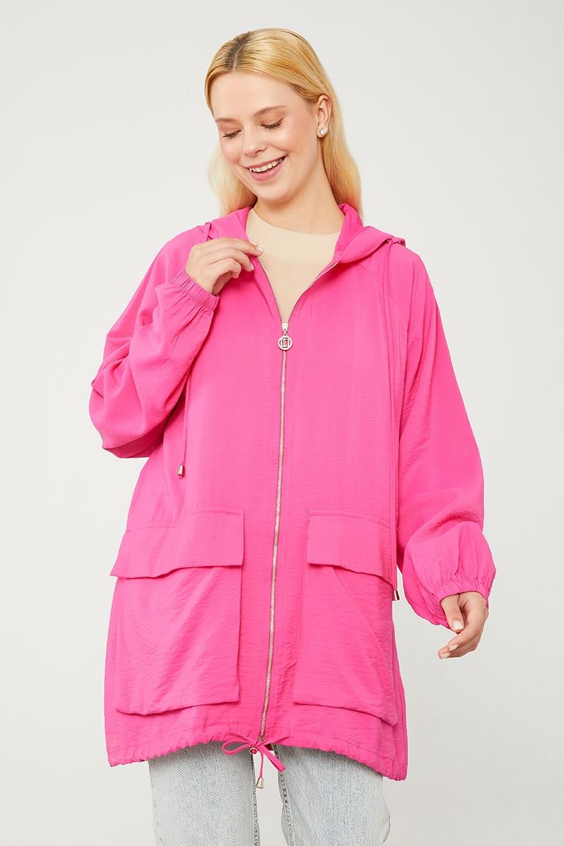 Fuşya Kapüşonlu Tril Kumaş Kap (540031)