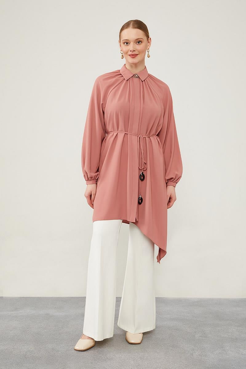 Gül Gömlek Yaka Beli İp Bağlamalı Tunik (LVFW2321030)