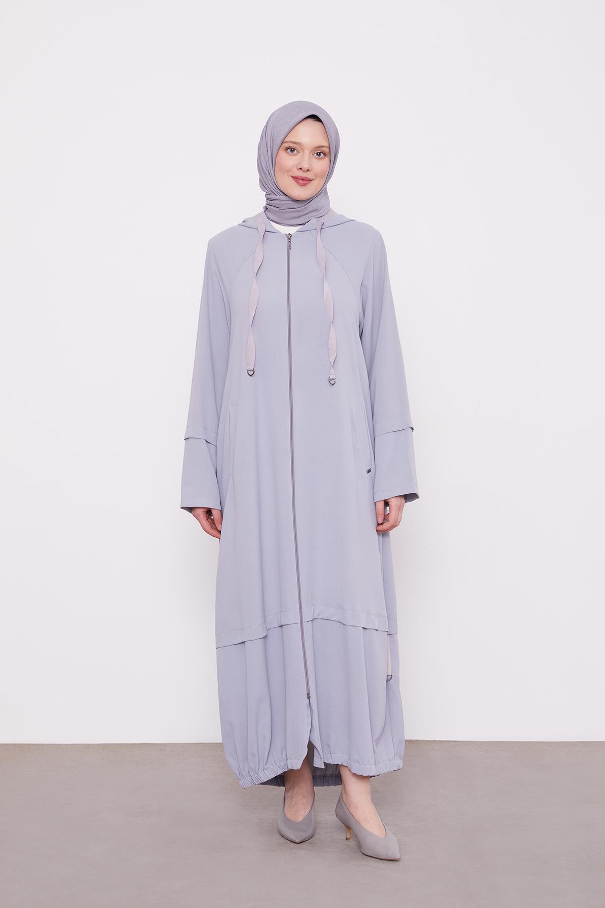 Gri Etek Ucu Büzgülü Ferace (520119)