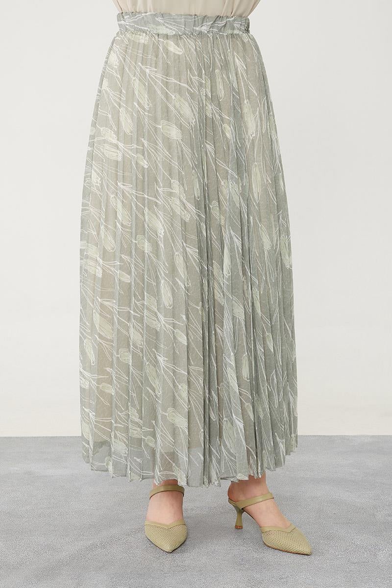 LevidorLevidor Haki Çiçek Desen Şifon Etek
