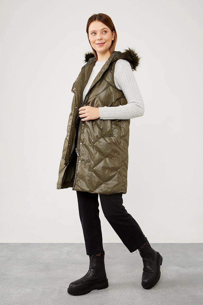 Haki Kapitone Kapüşonlu Çıtçıt Kapamalı Yelek (580008)