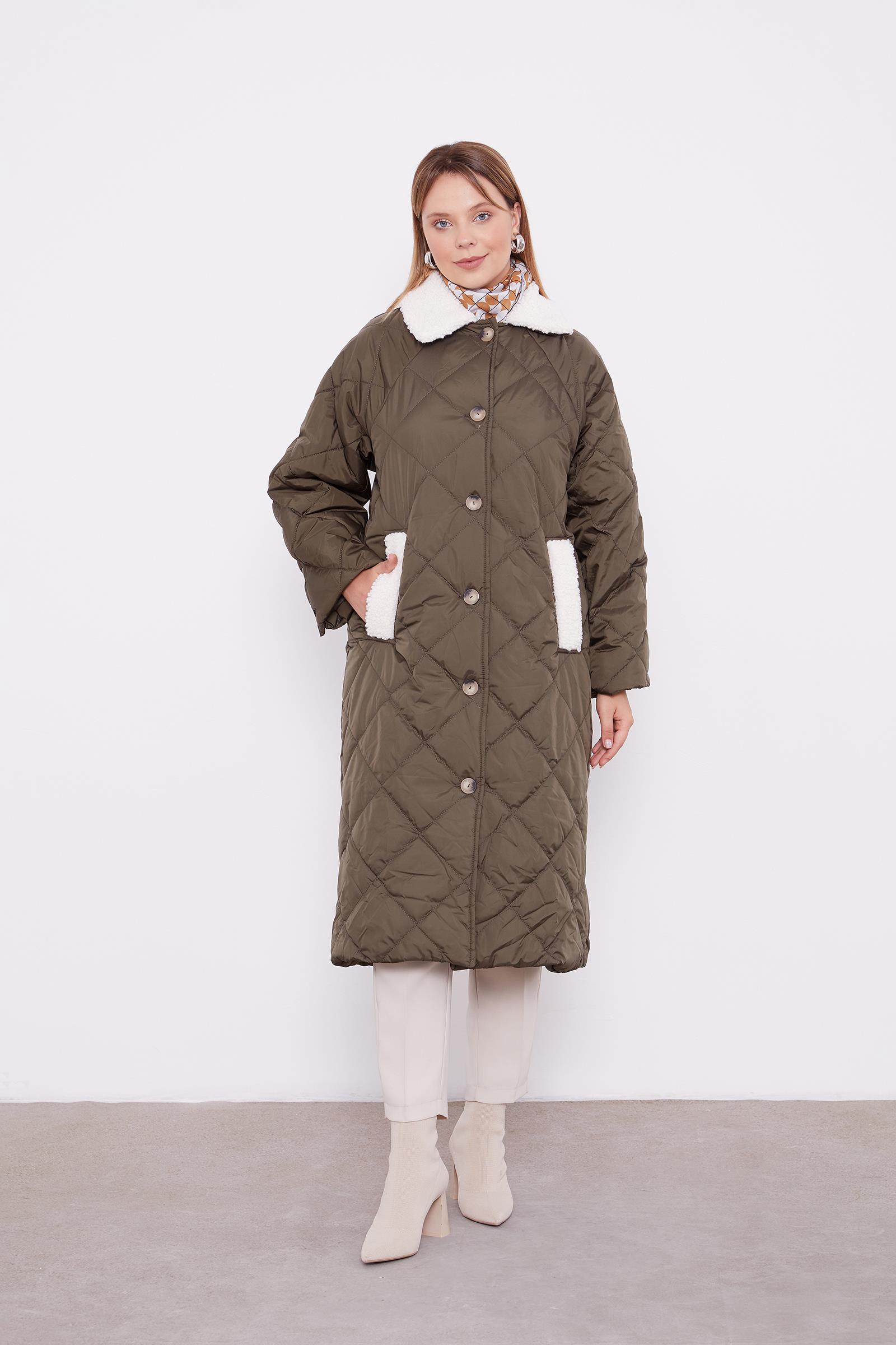 Haki Kürk Detaylı Kapitone Mont (560002)