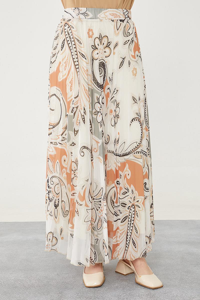 Haki Pliseli Çiçek Desen Şifon Etek (420028)