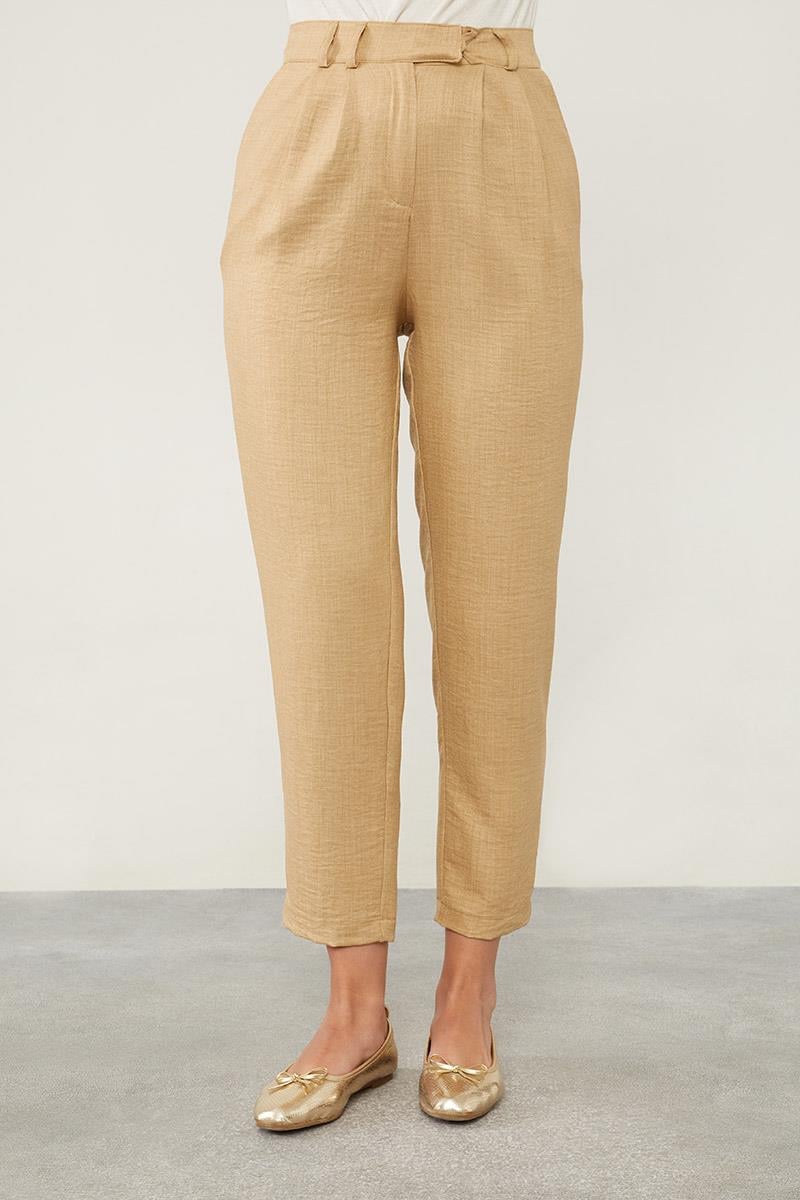 Koyu Bej Keten Kumaş Havuç Pantolon (410080)