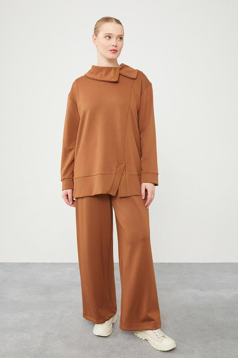 Kahve Asimetrik Yaka Spor Takım (140230)