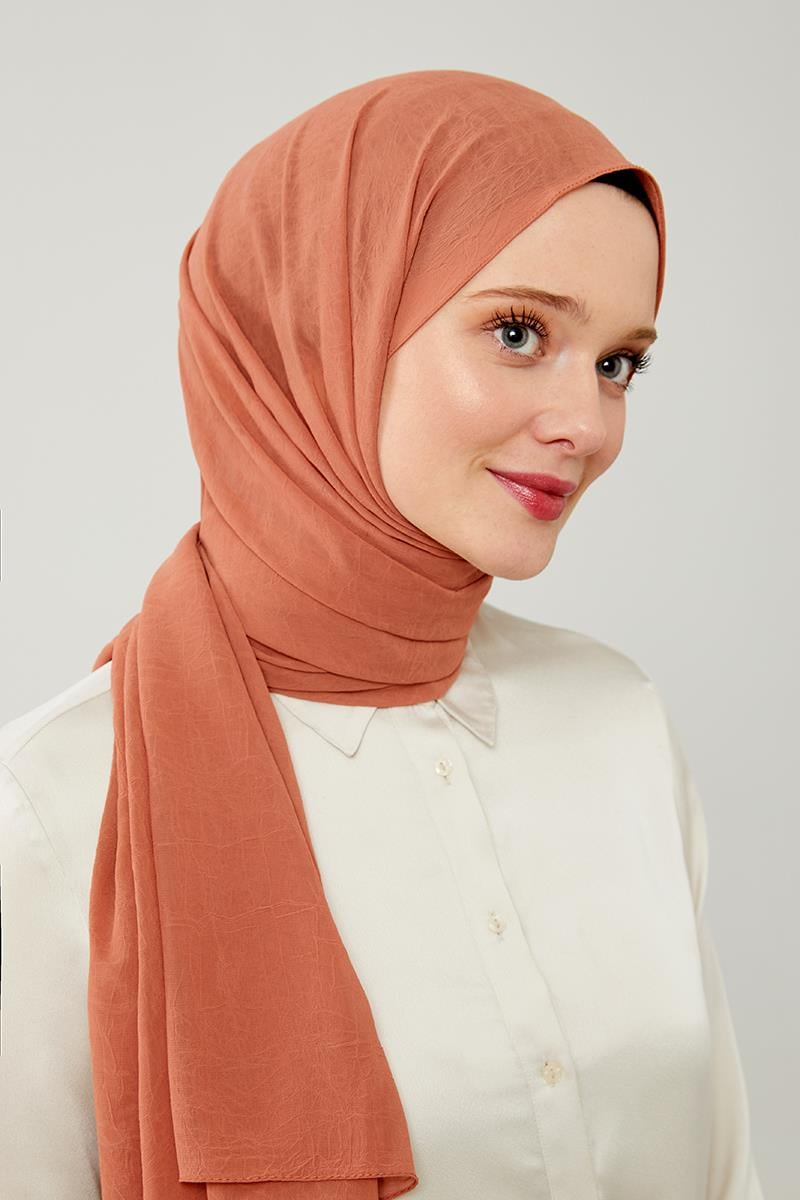 Kiremit Düz Renk Frozen Krep Şal (LVD.PMK.0053)