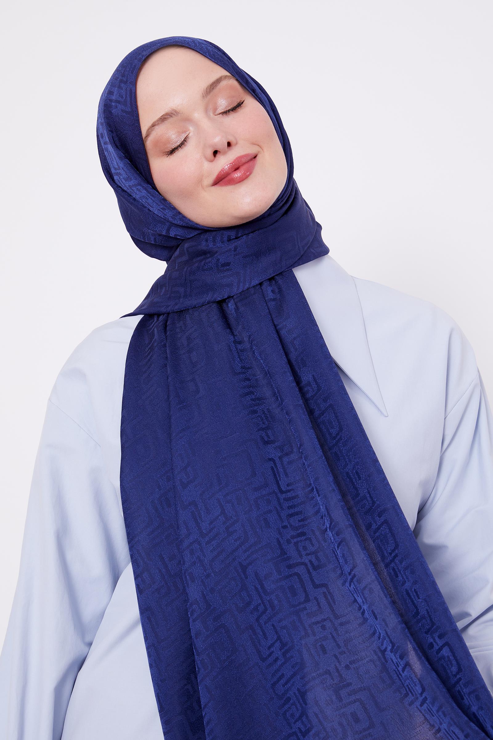 LevidorLevidor Lacivert Labirent Desen Jakarlı Janjan Şal