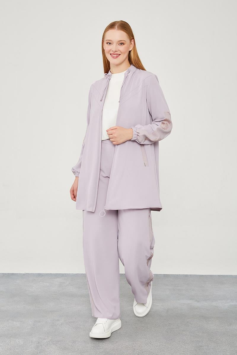 Lila İşleme Detay Fermuar Kapamalı İkili Takım (100029)