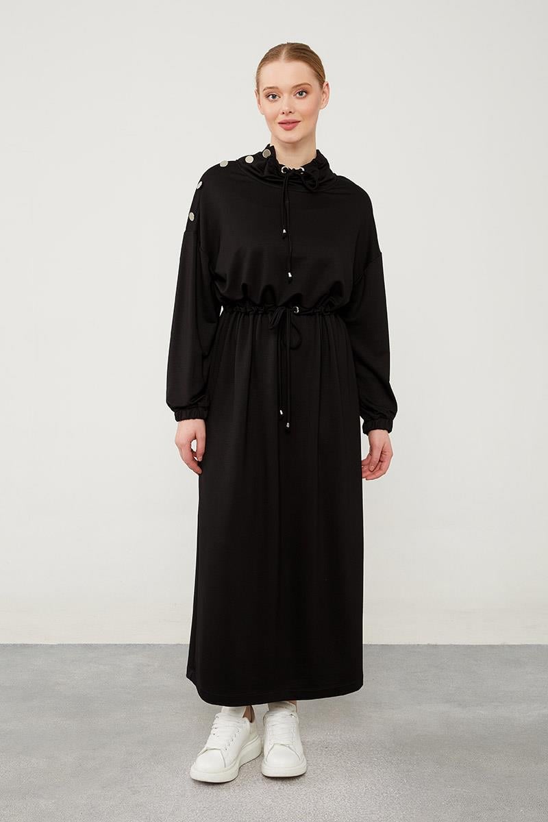 Siyah Boyun ve Beli İp Bağlamalı Elbise (330137)
