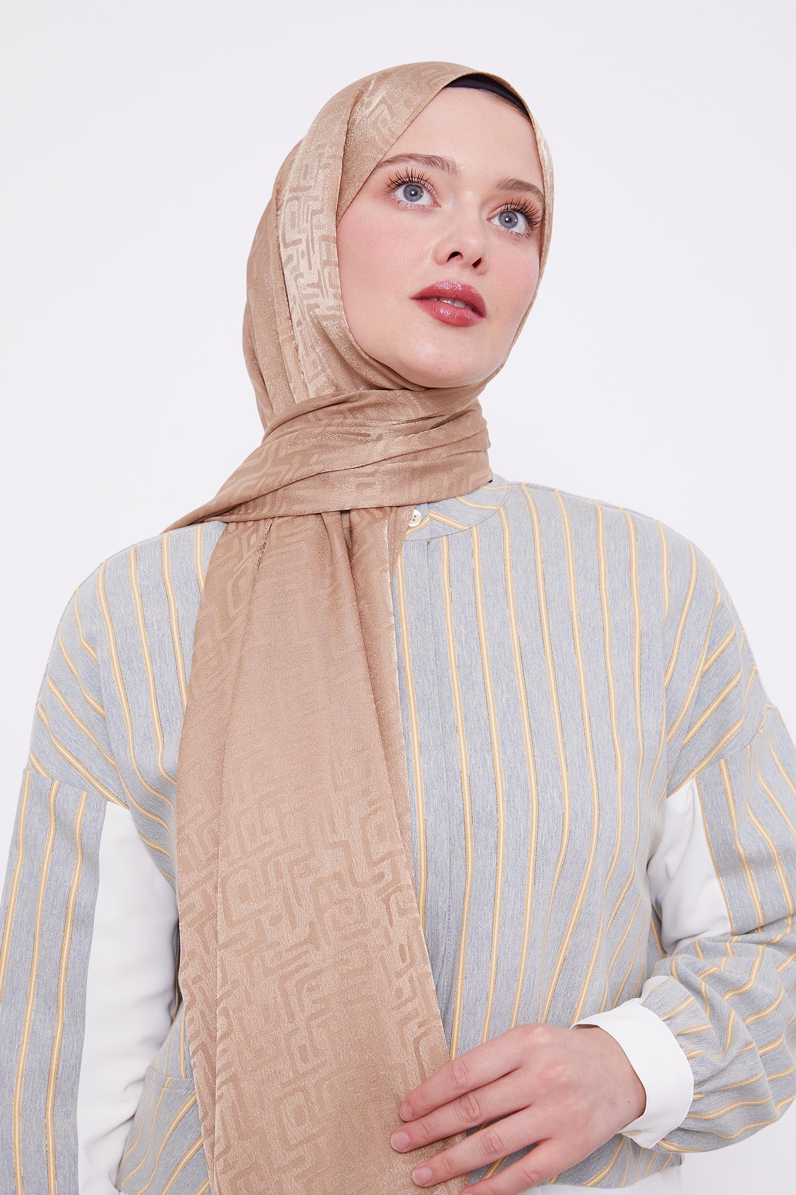 LevidorLevidor Sütlü Kahve Labirent Desen Jakarlı Janjan Şal