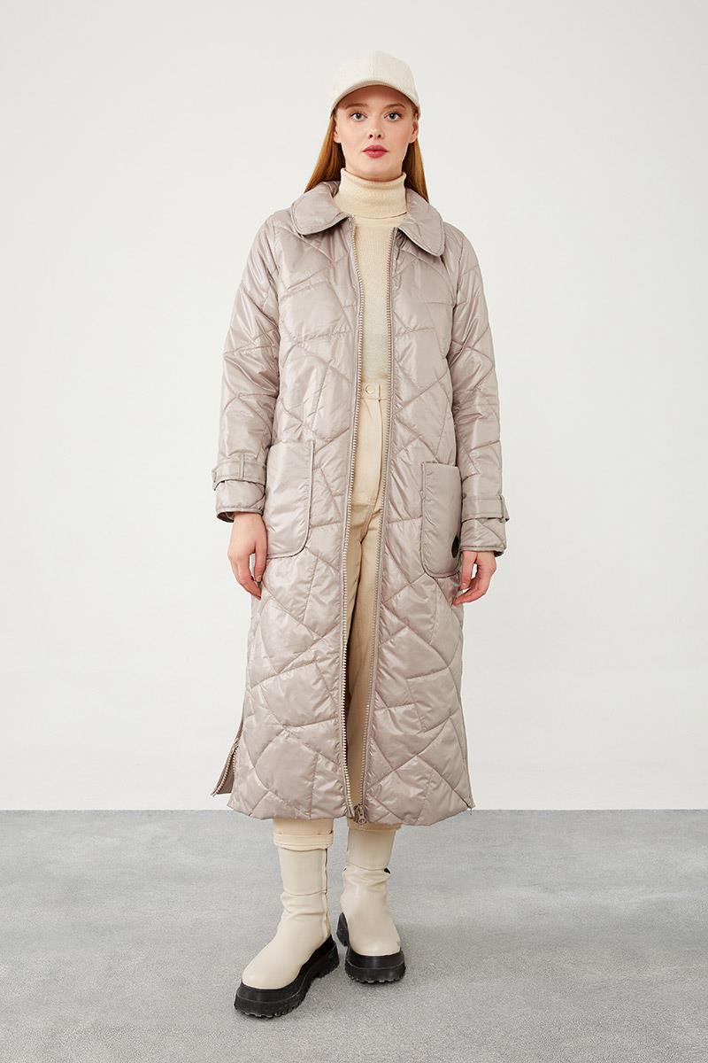 Taş Geniş Yaka Kapitone Mont (560014)