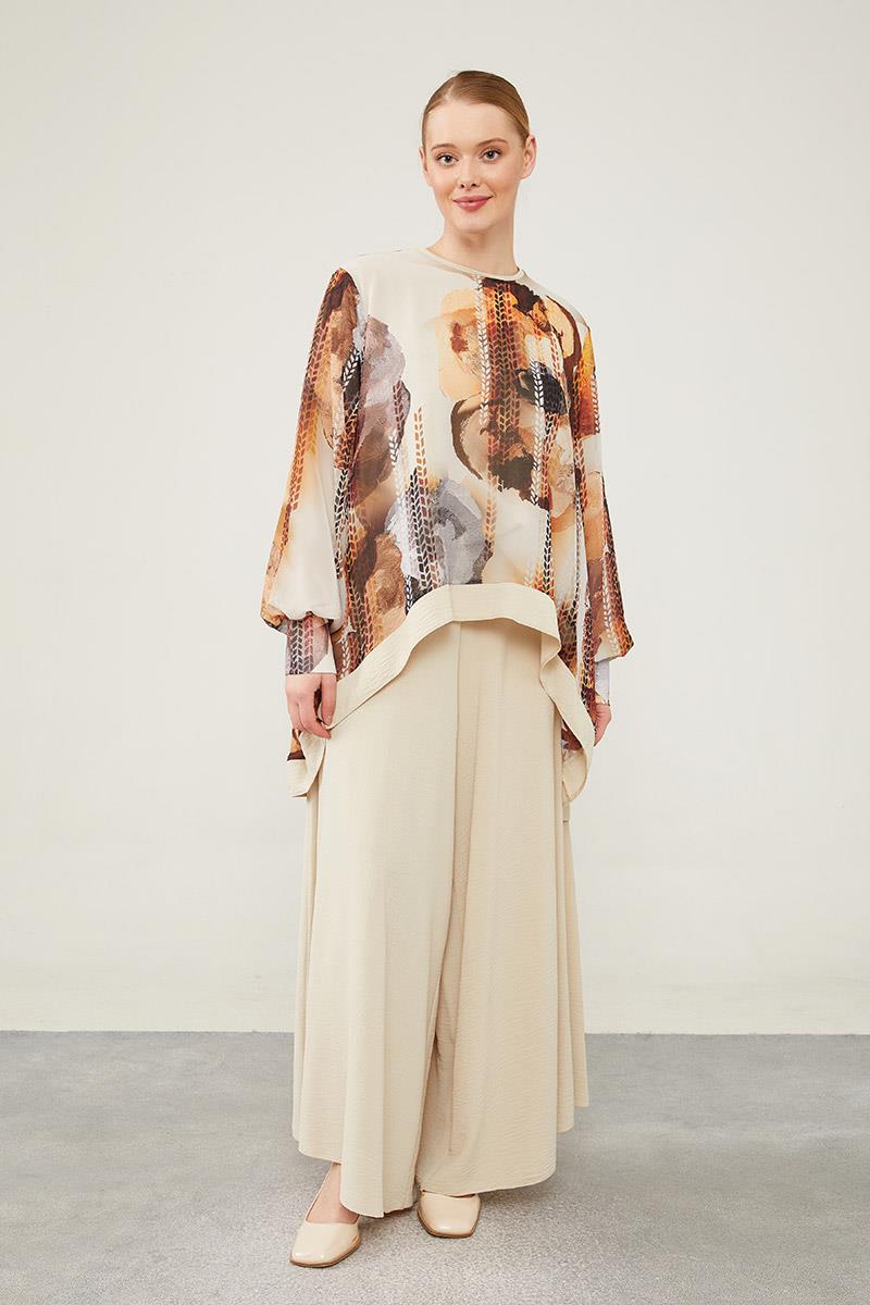 Taba Çiçek Baskılı Pantolonlu Bluz Takım (LVSS2215034)